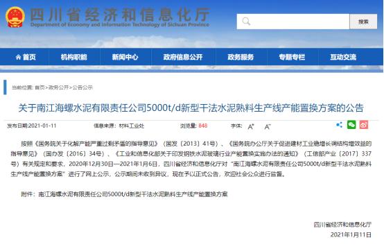 而在2022年5月13日,四川省經濟和信息化廳發布【四川省經濟和信息化廳對省十三屆人大第五次會議《關于支持革命老區利用優勢資源啟動南江海螺水泥項目建設的建議》答復的函】稱:受有關政策影響,南江海螺水泥產能置換項目無法落地建設。