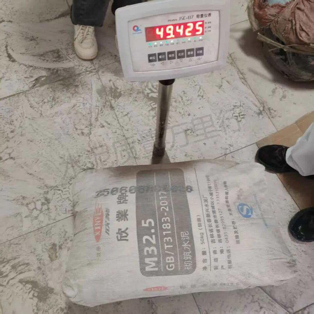 袋重偏差問題同樣不容忽視。7批次袋重不符合標準要求的產品涉及6家企業。其中吉林省長春新興水泥廠“欣業”牌M32.5標稱50kg,隨機抽查四包M32.5砌筑水泥,實測重量分別為47.565kg、47.650kg、48.805kg、49.425kg,平均袋重約48.36kg,與標準要求49.5kg相差約1.14kg。